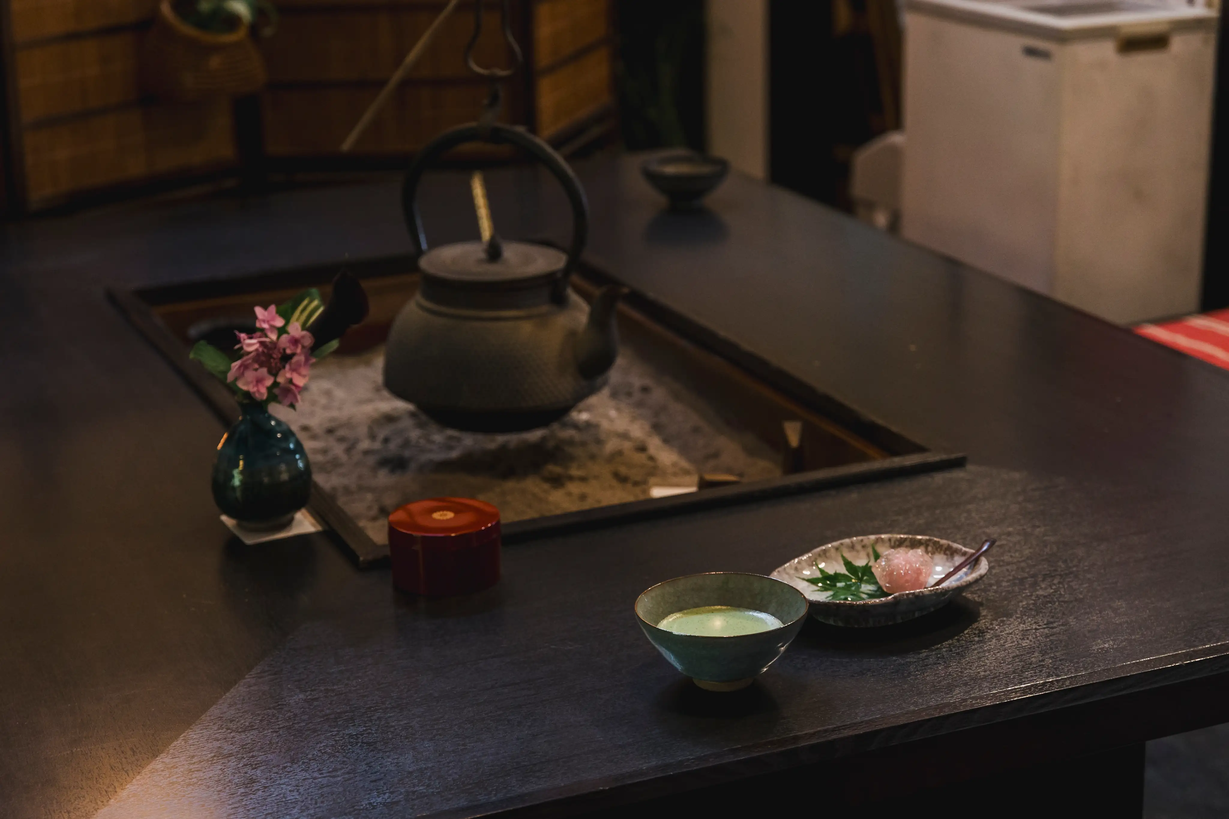 花月では、女将が点てる抹茶と季節の上生菓子セットを