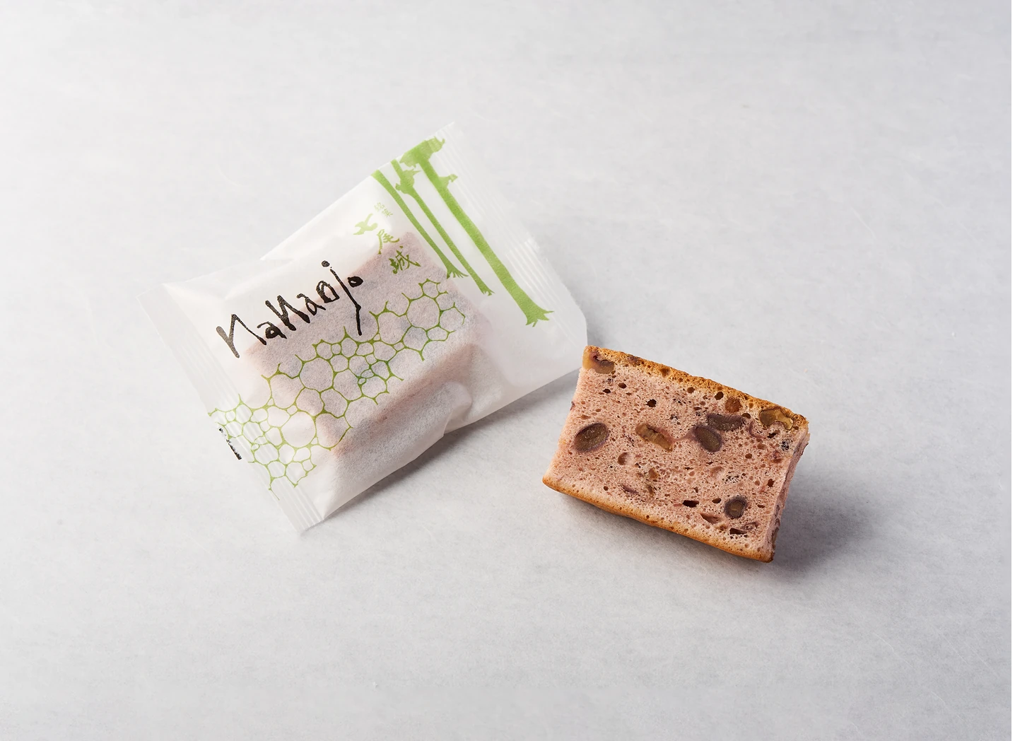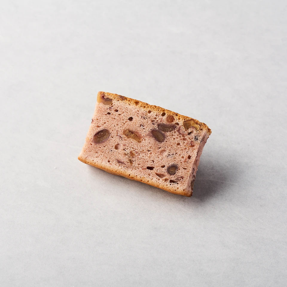 香ばしいクルミと大納言小豆をしっとり生地で包み込みました。力強さと繊細さが共存する構成です。