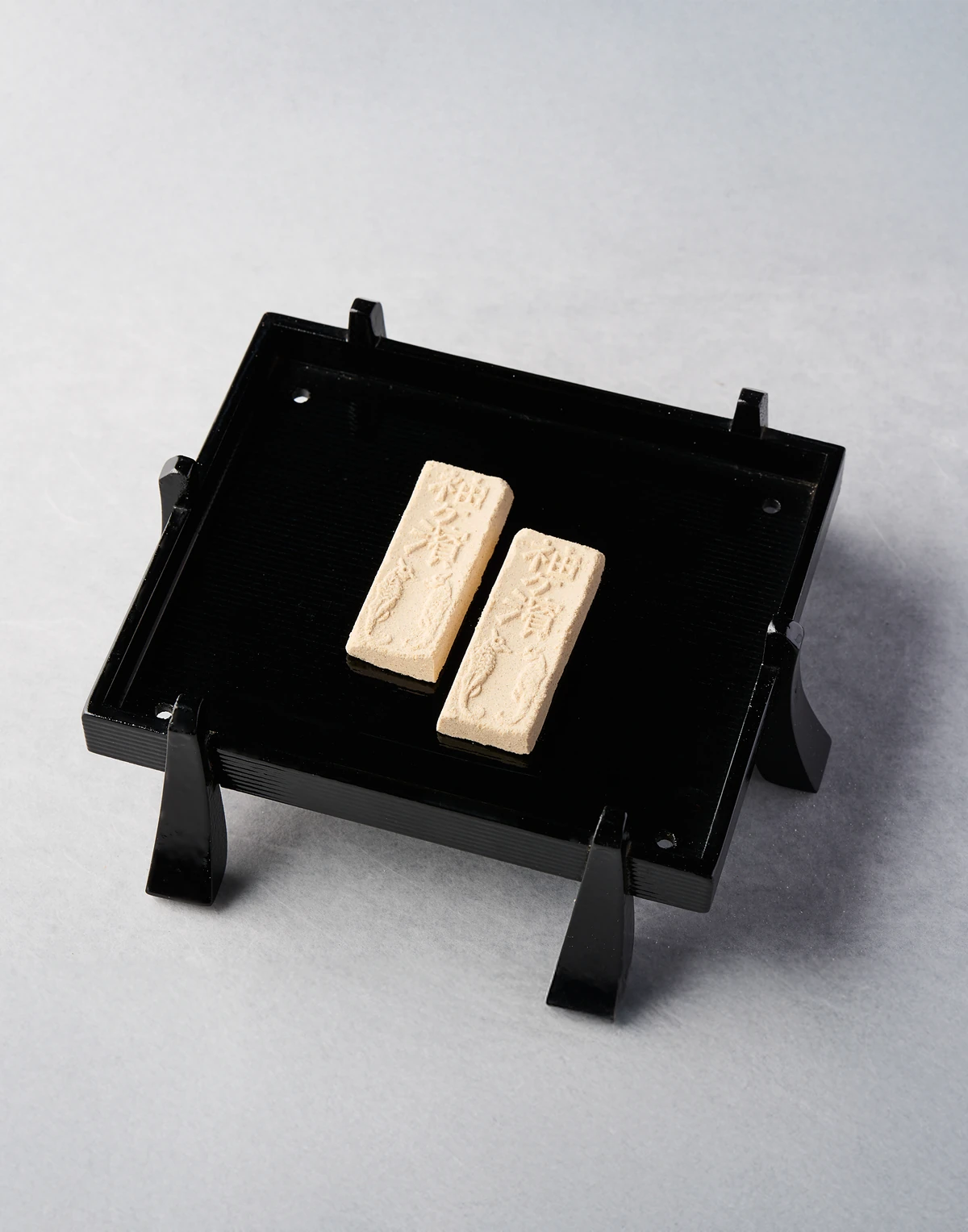 大正・昭和・平成の御代に三度、天皇陛下へ献上された栄誉をもつ干菓子。能登・袖ヶ浜の波を象る意匠が、祝いの席を雅やかに彩ります。